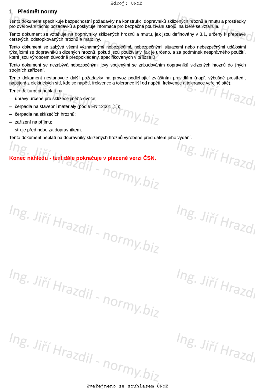 Tento dokument specifikuje bezpečnostní požadavky na konstrukci dopravníků sklizených hroznů a rmutu a prostředky pro ověřování těchto požadavků a poskytuje informace pro bezpečné používání strojů, na které se vztahuje.