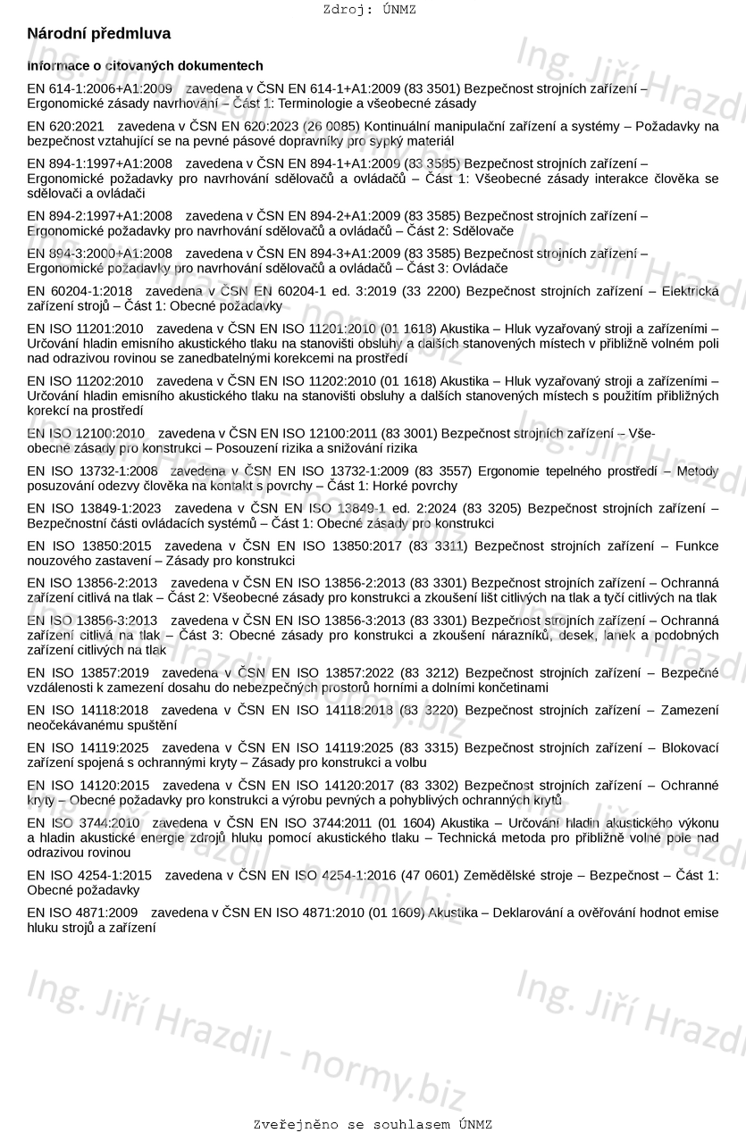 Tento dokument se nezabývá nebezpečnými jevy spojenými se zabudováním dopravníků sklizených hroznů do jiných strojních zařízení.