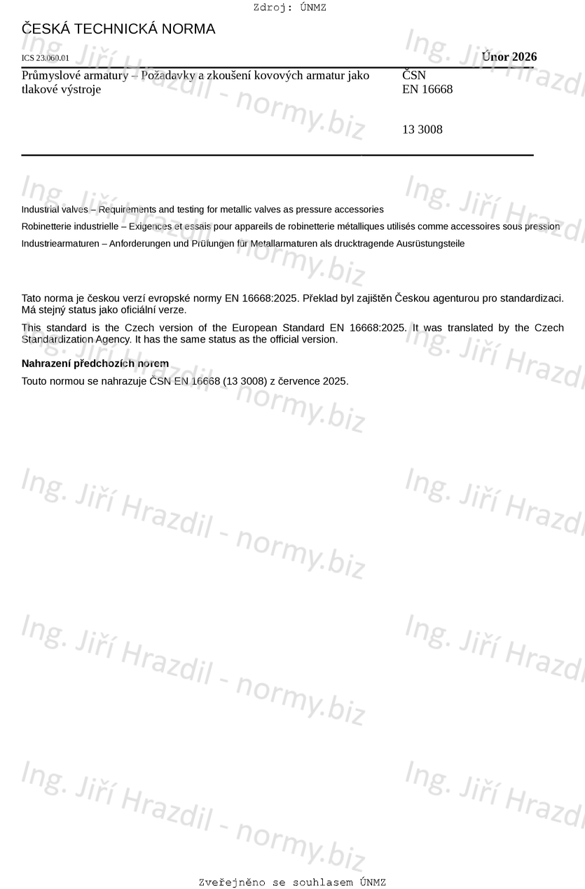 | Tato norma nahradila | ČSN EN 16668 (133008) z července 2025 |