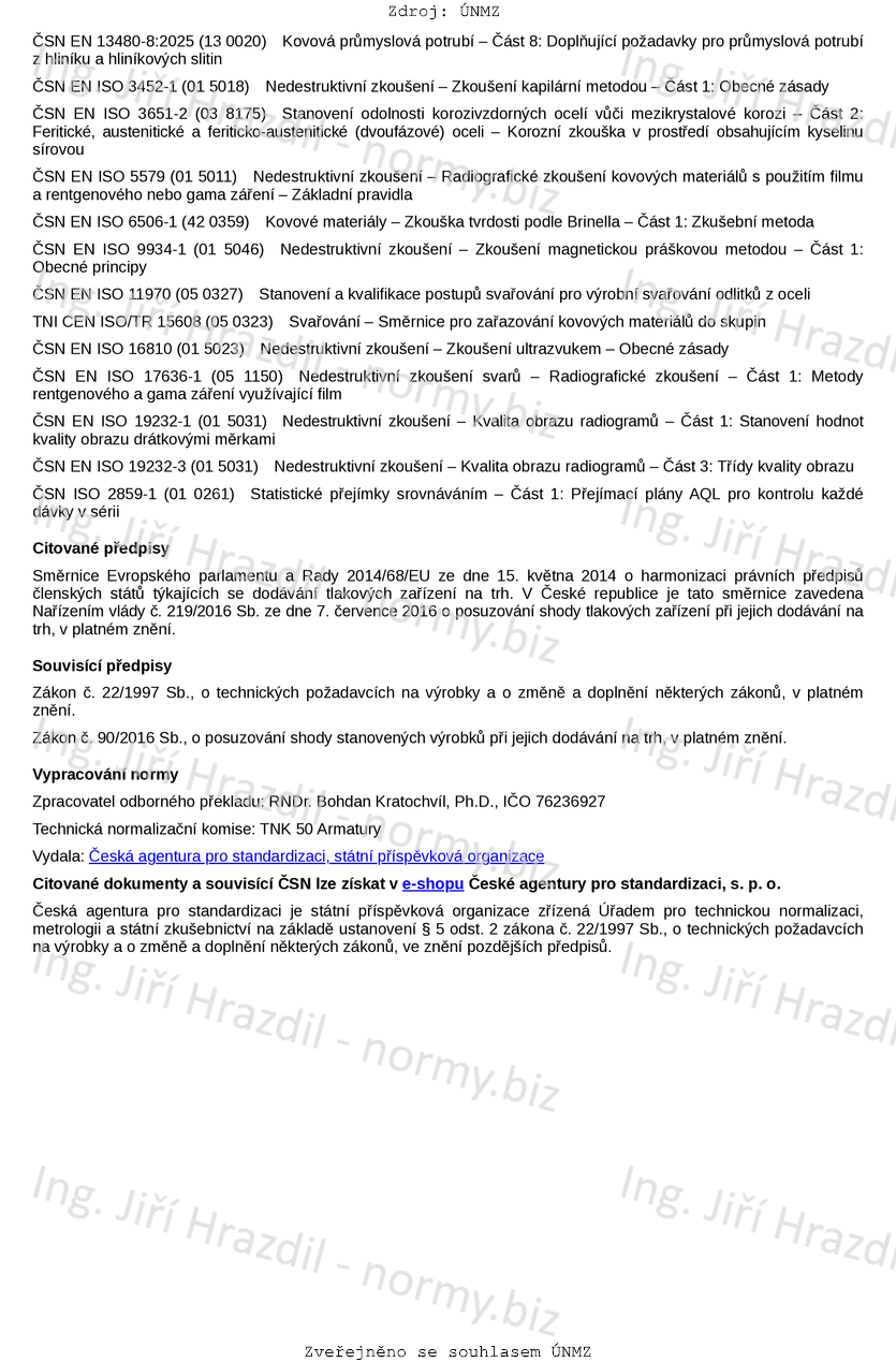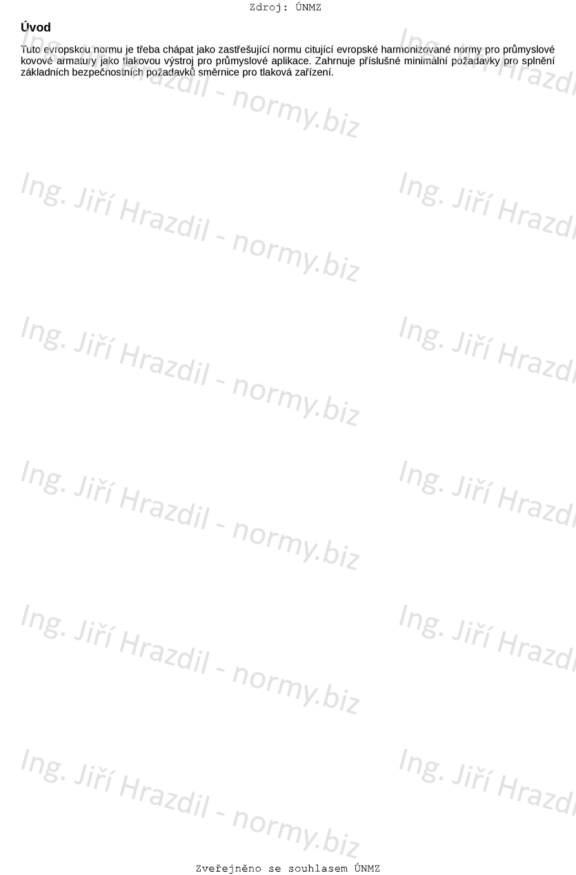 V této normě jsou řešeny všechny příslušné základní bezpečnostní požadavky na armatury uvedené v evropské směrnici pro tlaková zařízení a jsou předmětem této normy.