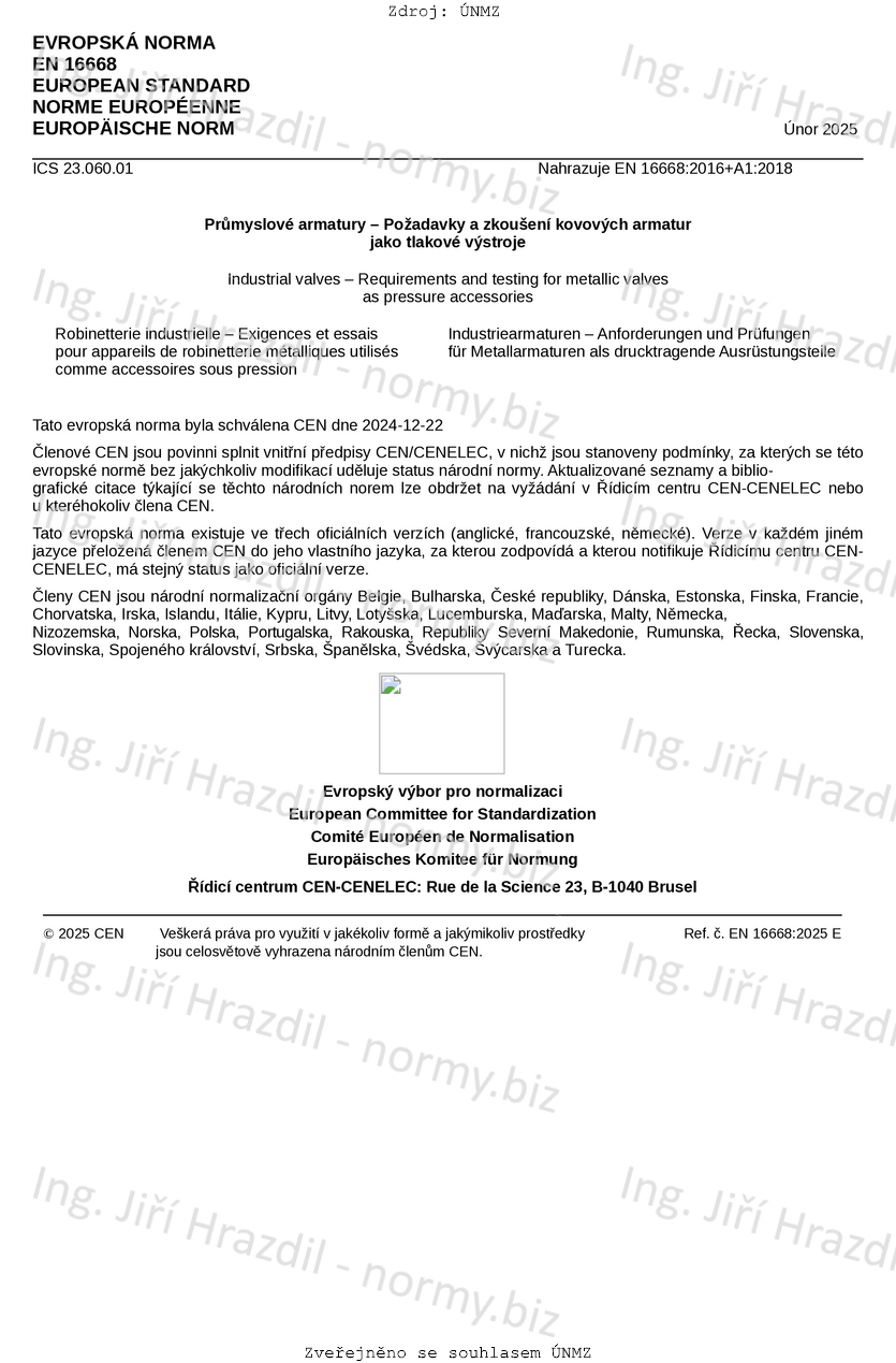 | Označení | ČSN EN 16668 (133008) |