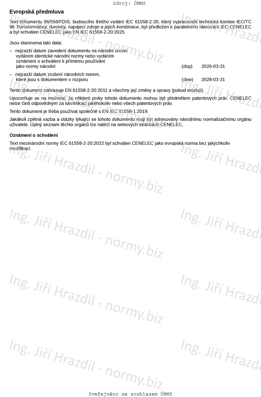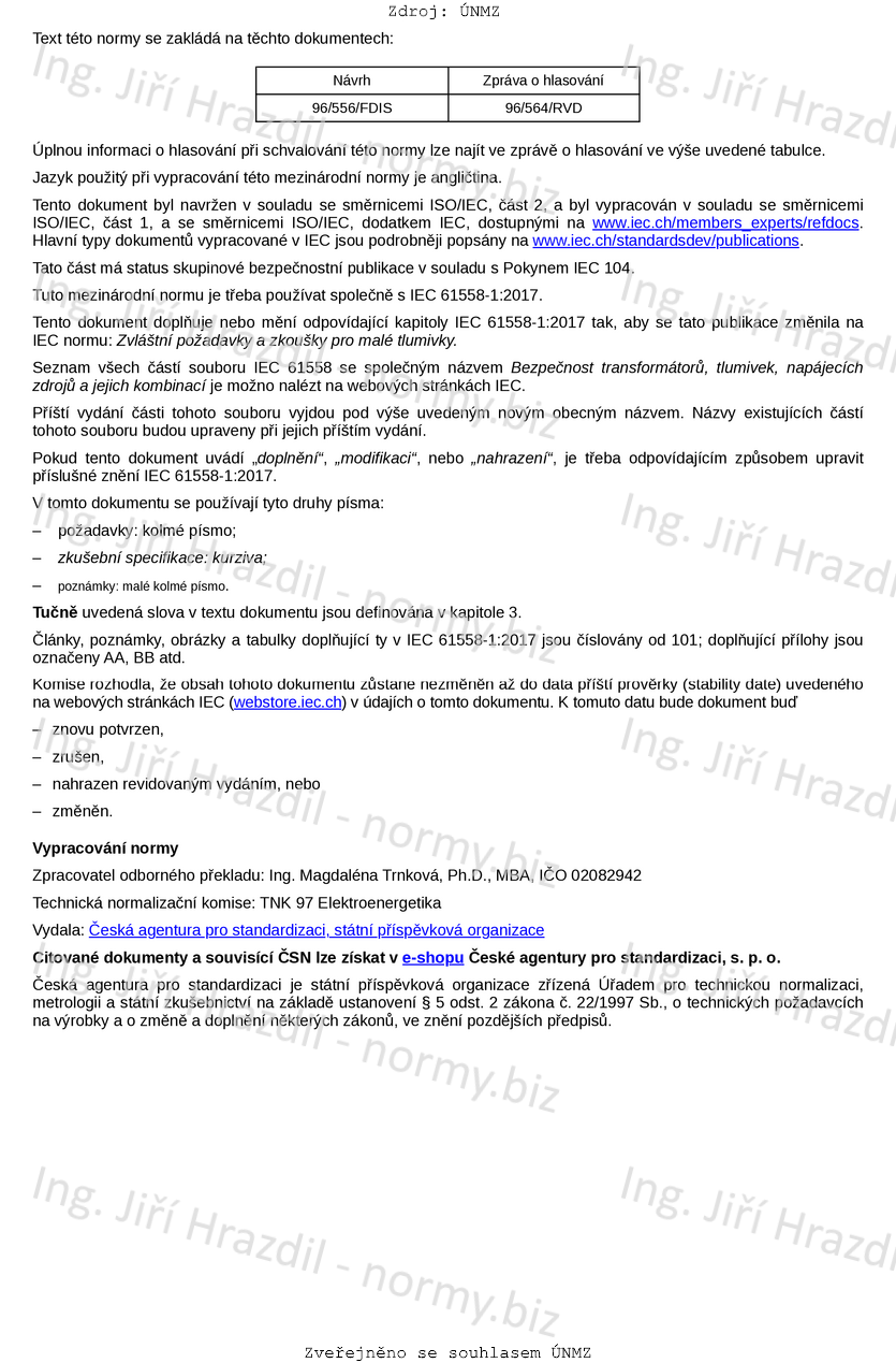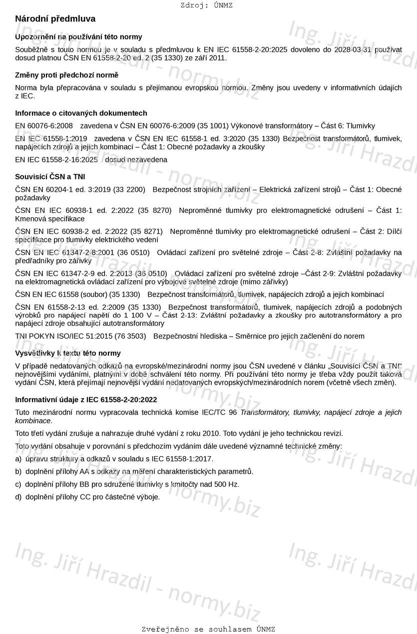 Označení ČSN EN IEC 61558-2-20 ed. 3 (351330)