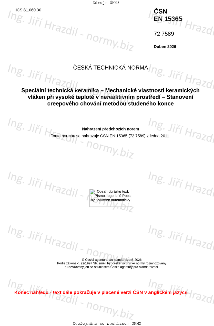 | Tato norma nahradila | ČSN EN 15365 (727589) z ledna 2011 |
