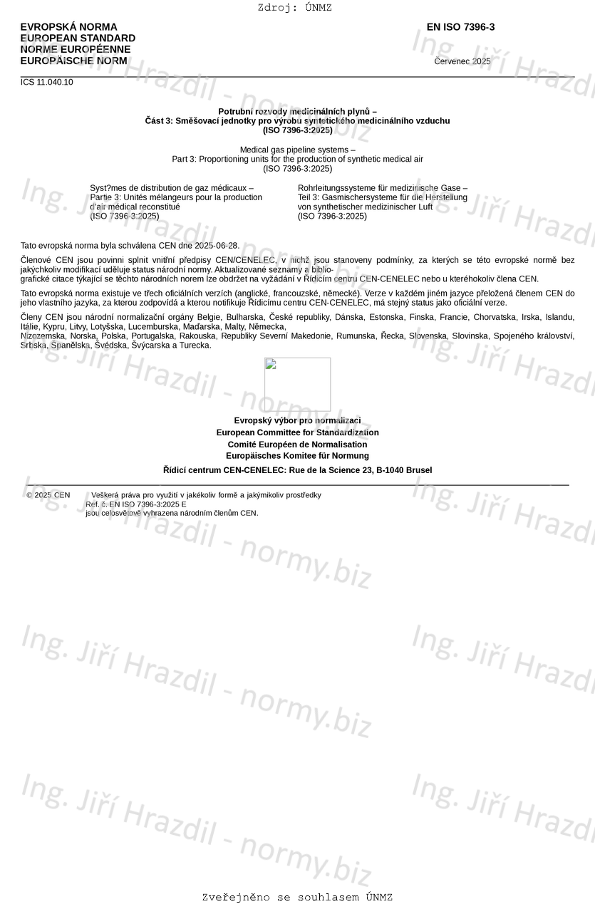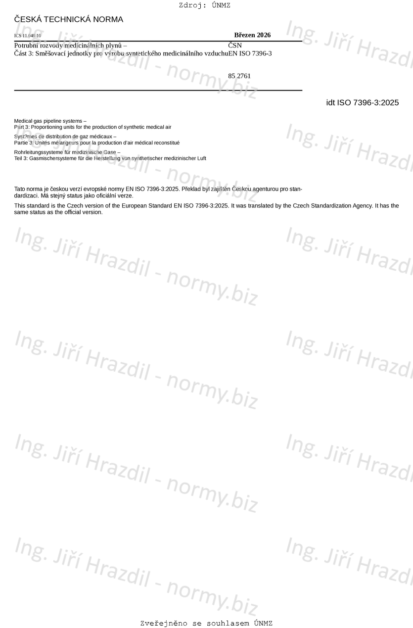 | Označení | ČSN EN ISO 7396-3 (852761) |