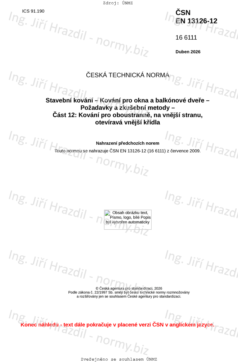 | Tato norma nahradila | ČSN EN 13126-12 (166111) z července 2009 |