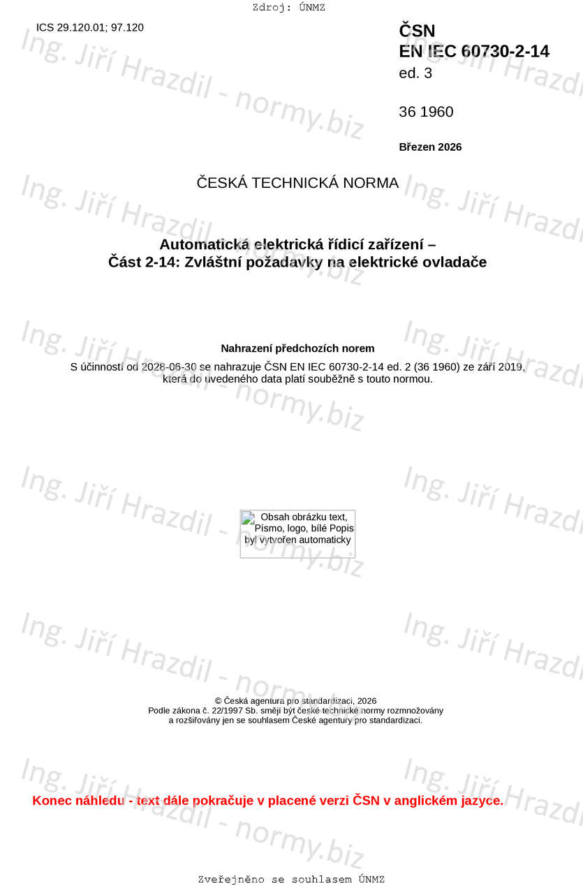 | Označení | ČSN EN IEC 60730-2-14 ed. 3 (361960) |