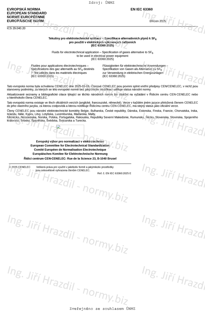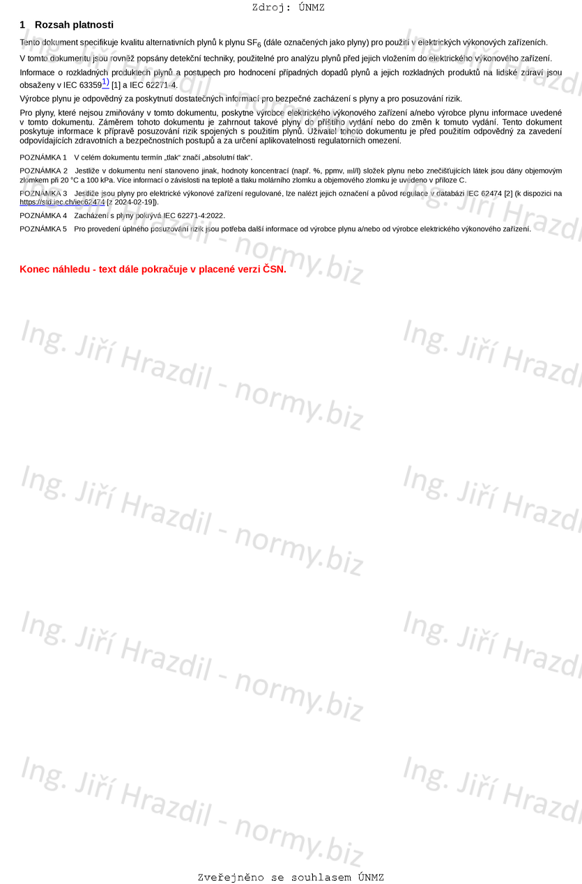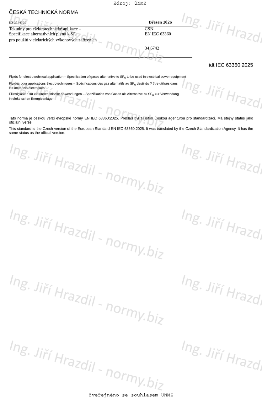 Tekutiny pro elektrotechnické aplikace - Specifikace alternativních plynů k SF6 pro použití v elektrických výkonových zařízeních