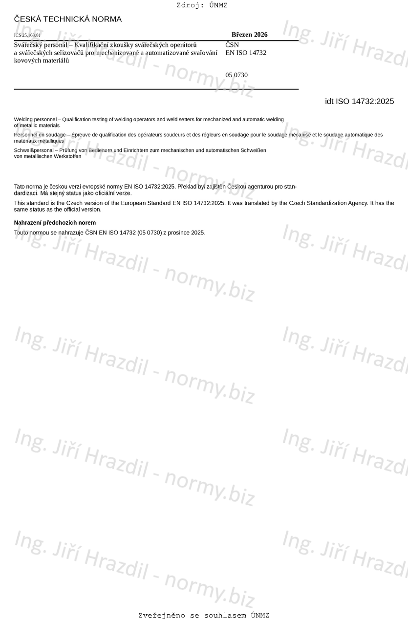 | Tato norma nahradila | ČSN EN ISO 14732 (050730) z prosince 2025 |
