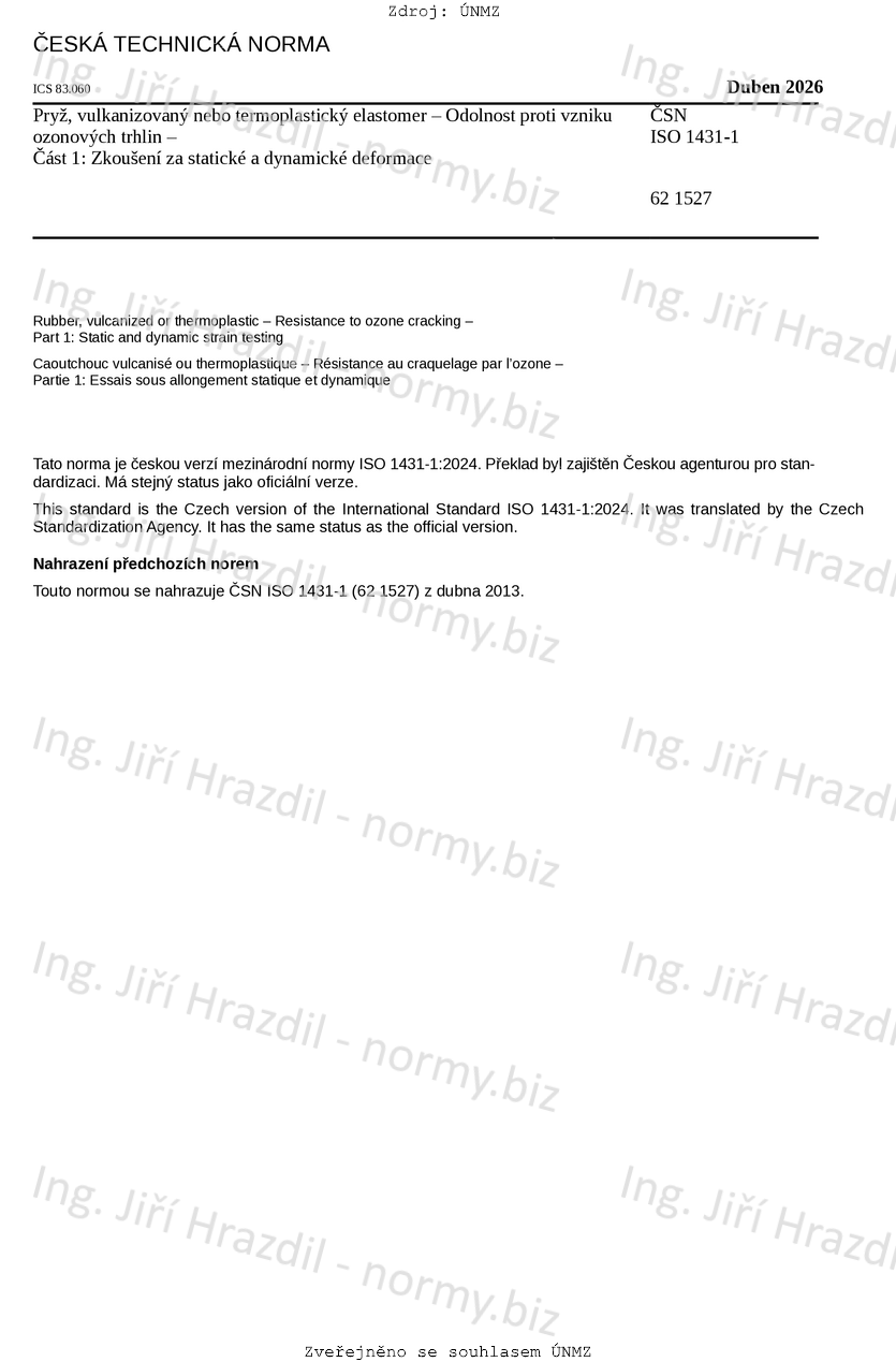 | Označení | ČSN ISO 1431-1 (621527) |