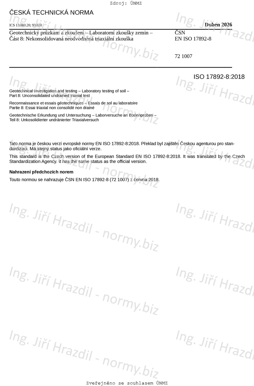 | Tato norma nahradila | ČSN EN ISO 17892-8 (721007) z června 2018 |