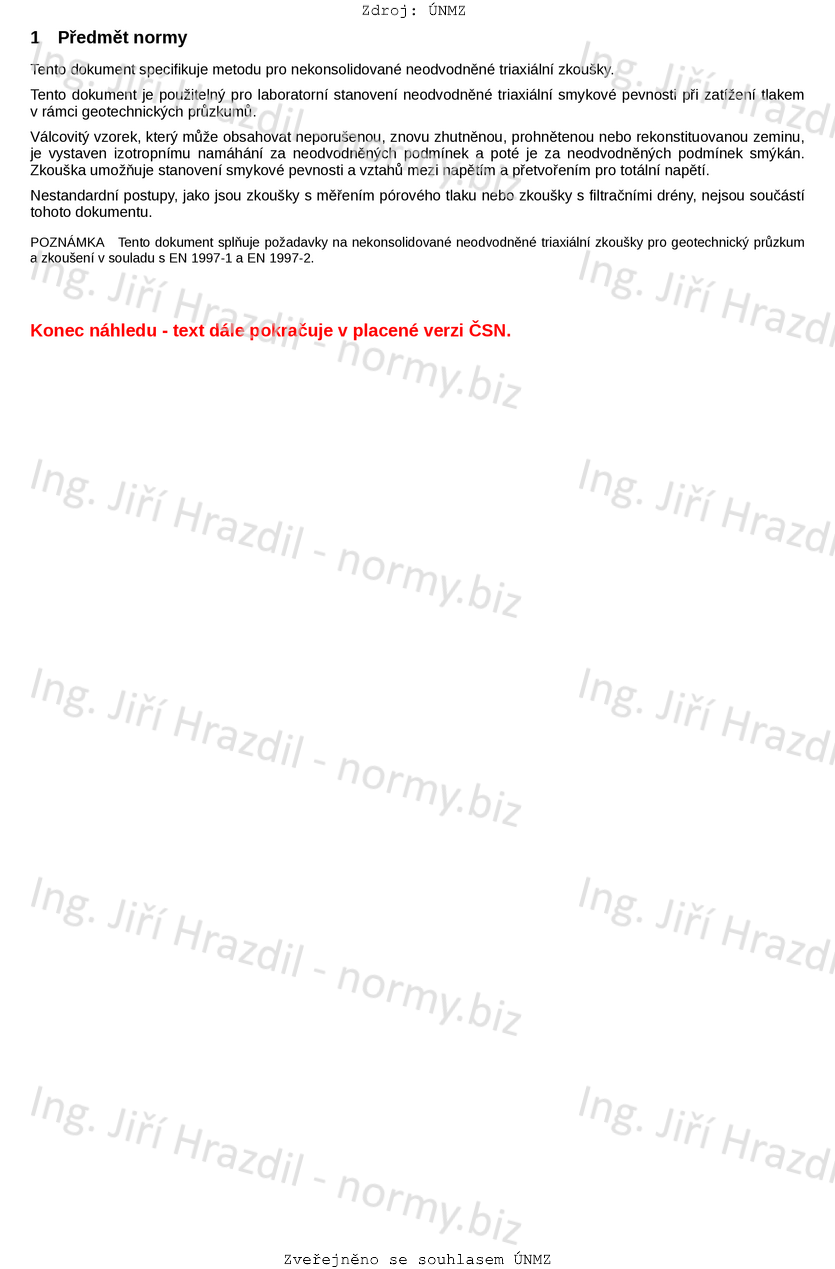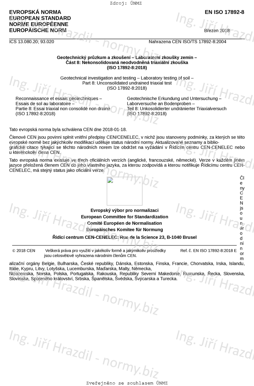 POZNÁMKA - Tento dokument splňuje požadavky na nekonsolidované neodvodněné triaxiální zkoušky pro geotechnický průzkum a zkoušení v souladu s EN 1997-1 a EN 1997-2.