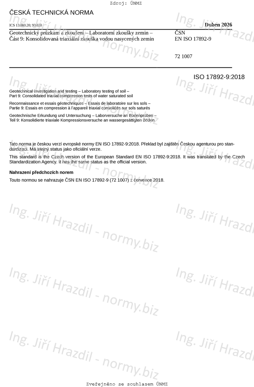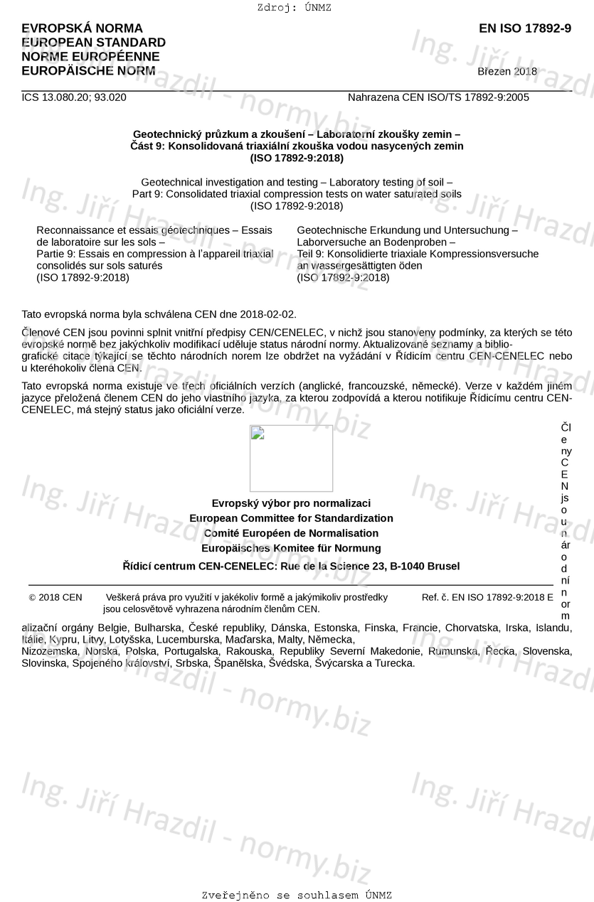 | Označení | ČSN EN ISO 17892-9 (721007) |