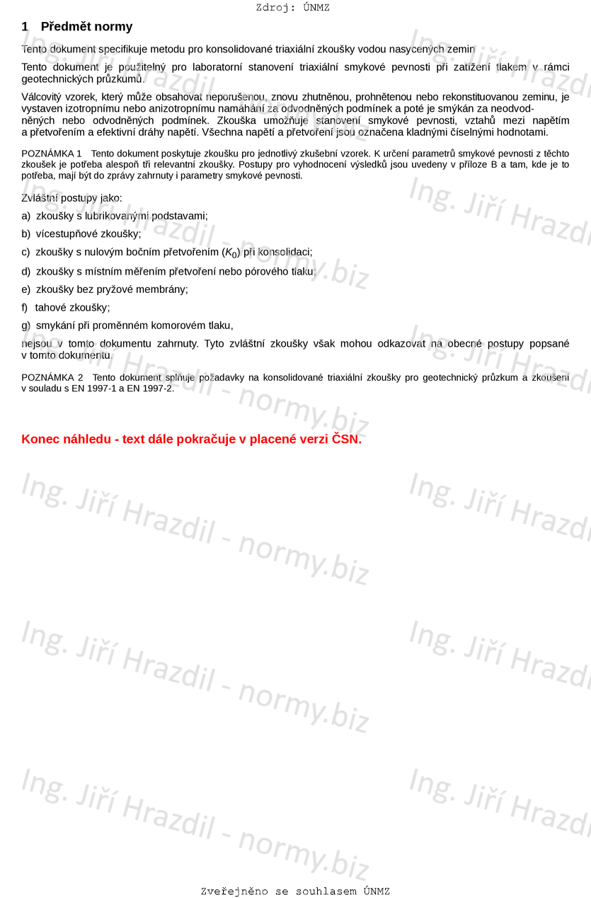 POZNÁMKA 2 - Tento dokument splňuje požadavky na konsolidované triaxiální zkoušky pro geotechnický průzkum a zkoušení v souladu s EN 1997-1 a EN 1997-2.
