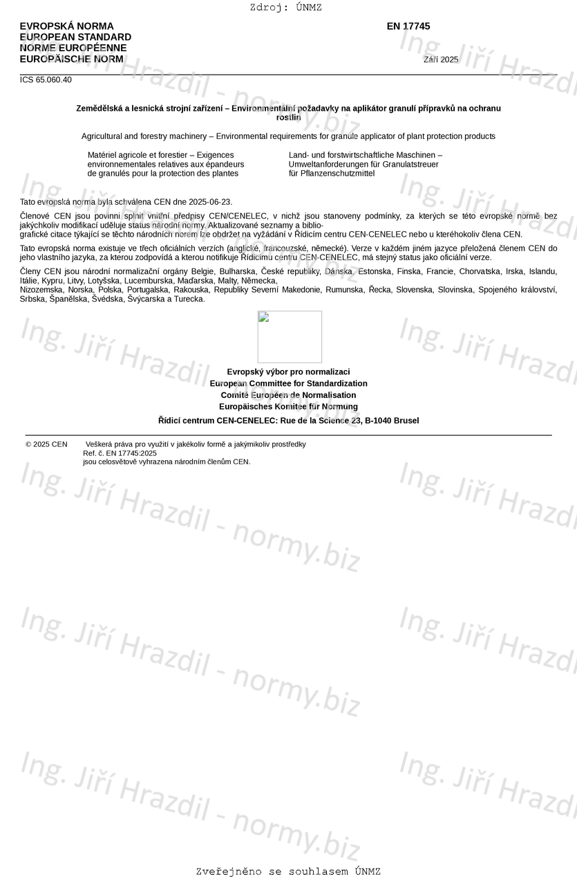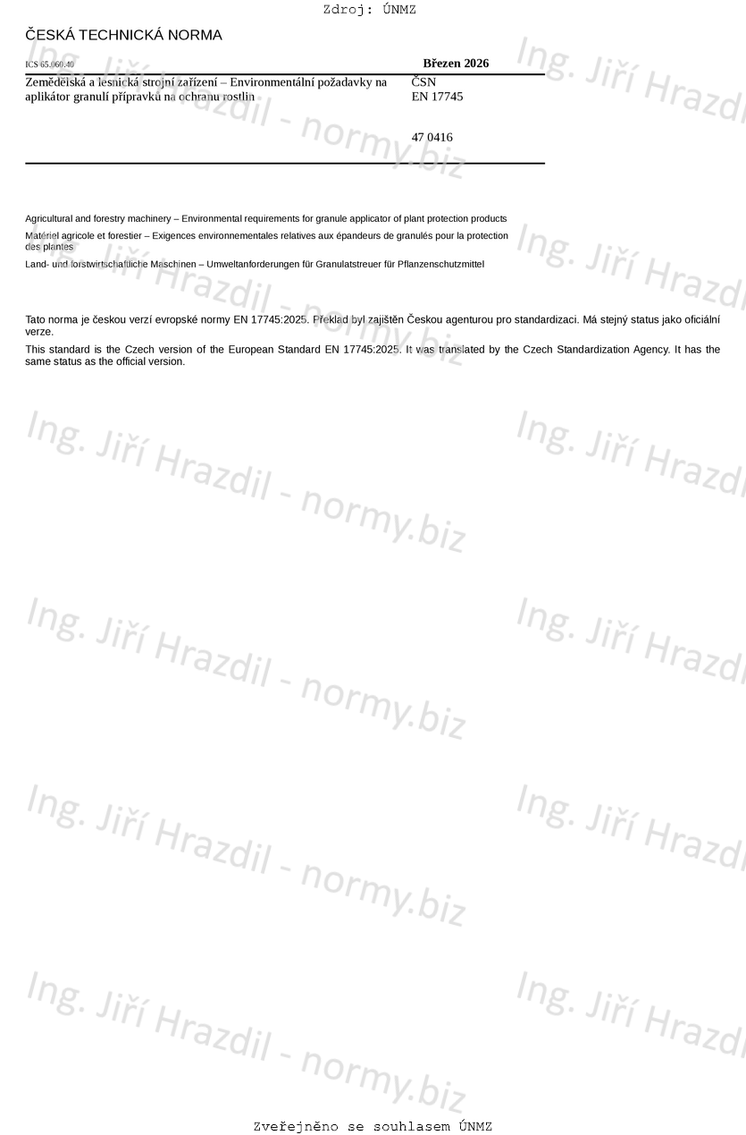 Zemědělská a lesnická strojní zařízení - Enviromentální požadavky na aplikátor granulí přípravků na ochranu rostlin