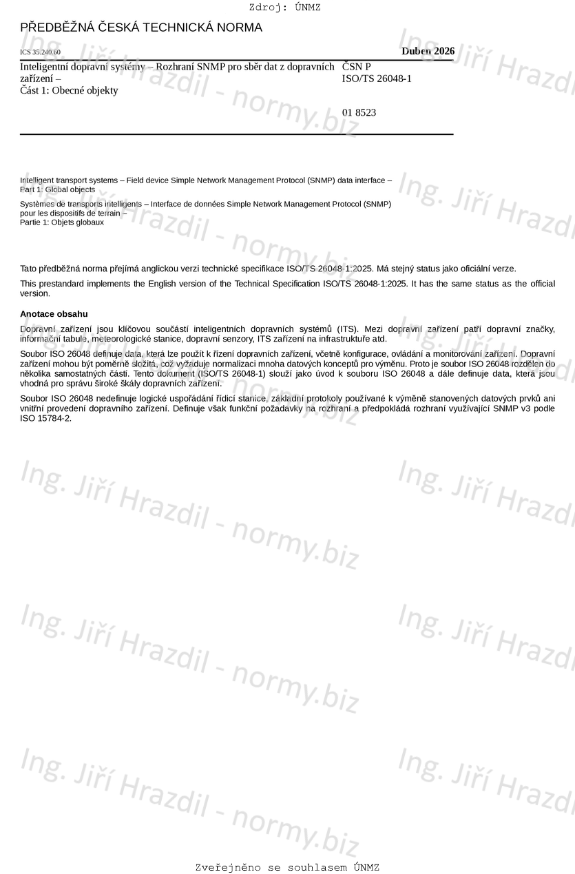 | Označení | ČSN P ISO/TS 26048-1 (018523) |