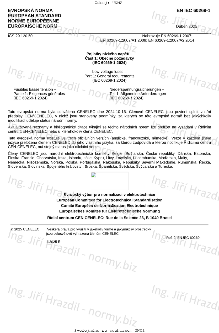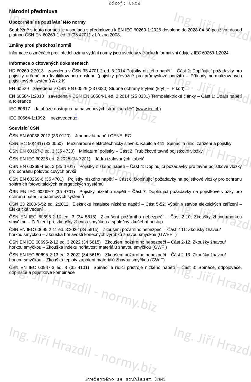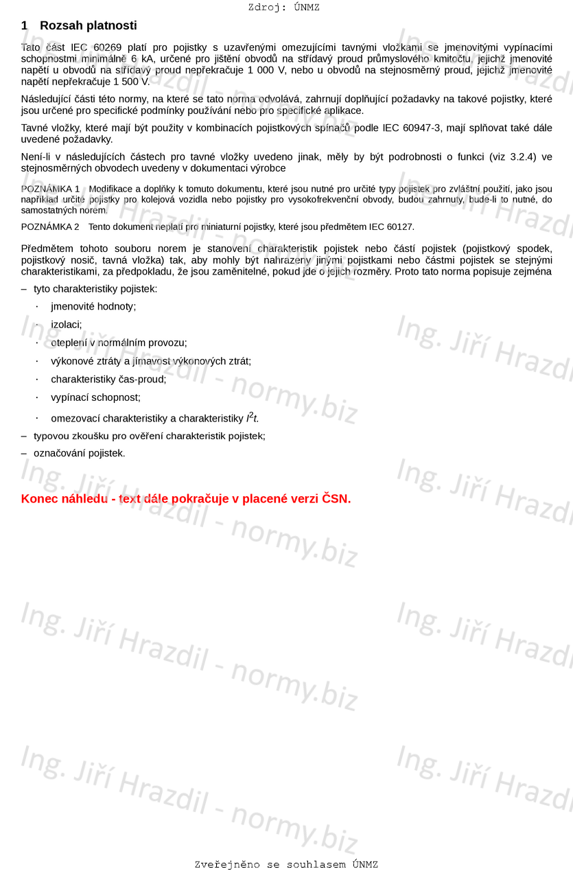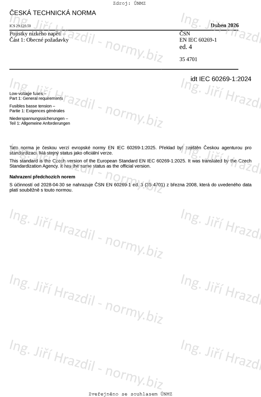 | Označení | ČSN EN IEC 60269-1 ed. 4 (354701) |