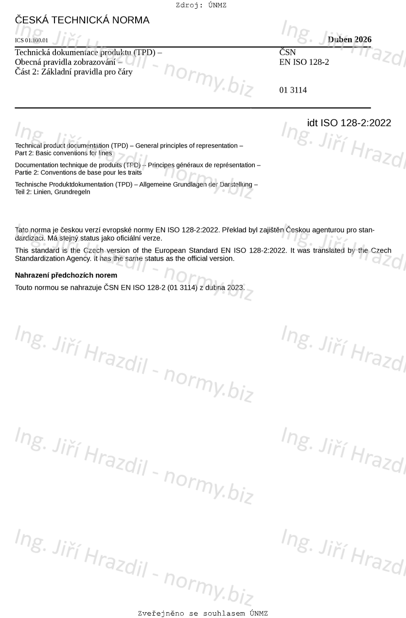 | Označení | ČSN EN ISO 128-2 (013114) |
