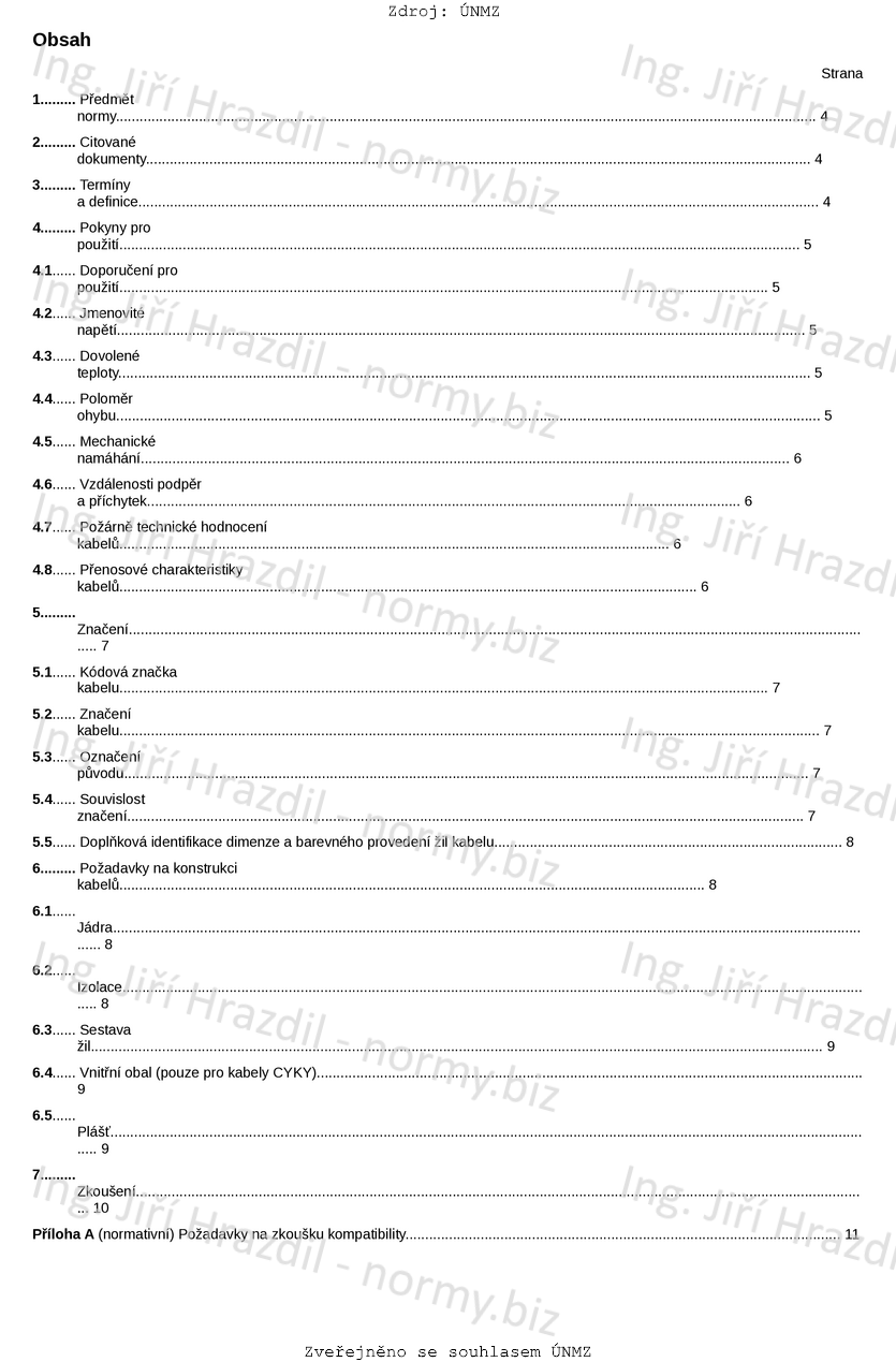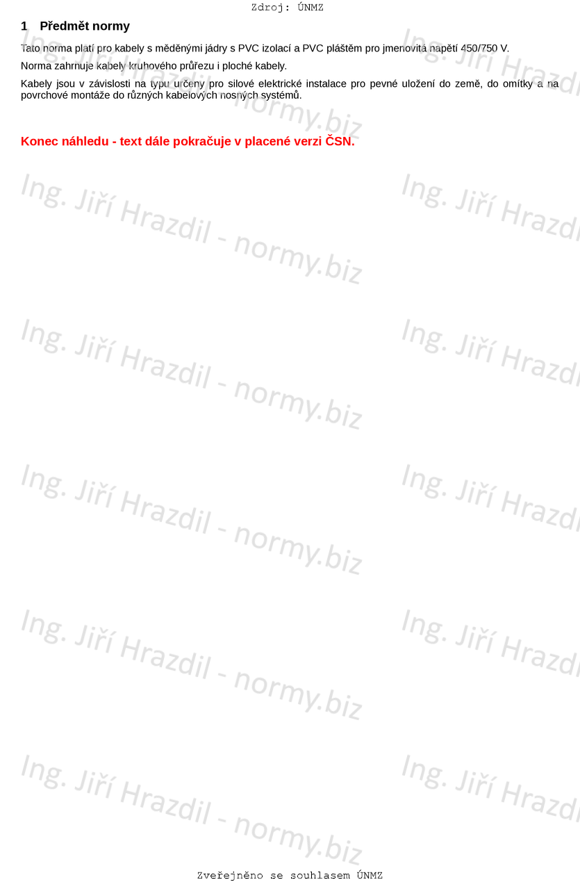 Tato norma platí pro kabely s měděnými jádry s PVC izolací a PVC pláštěm pro jmenovitá napětí 450/750 V.