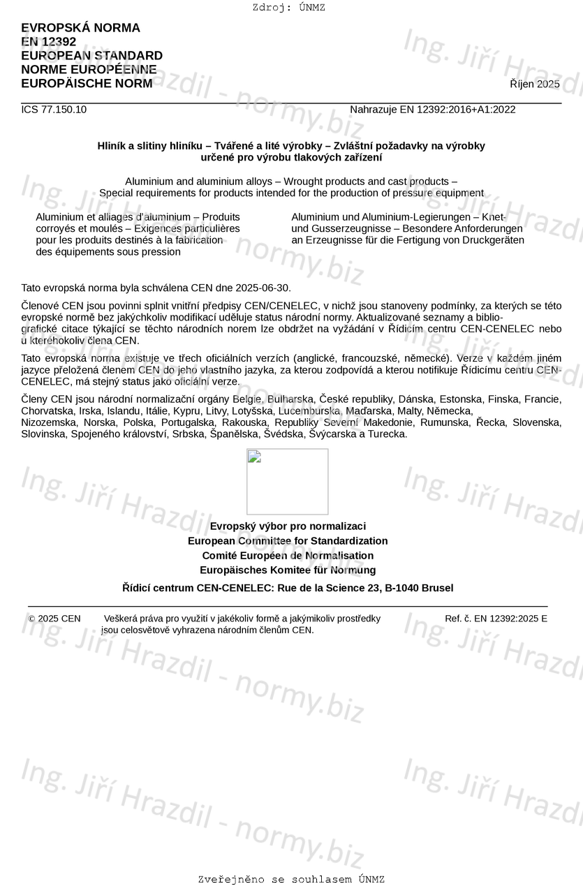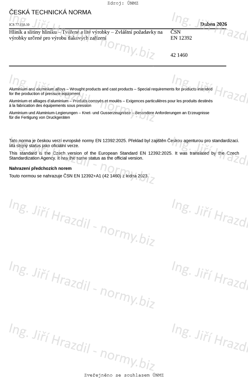| Tato norma nahradila | ČSN EN 12392 +A1 (421460) z ledna 2023 |